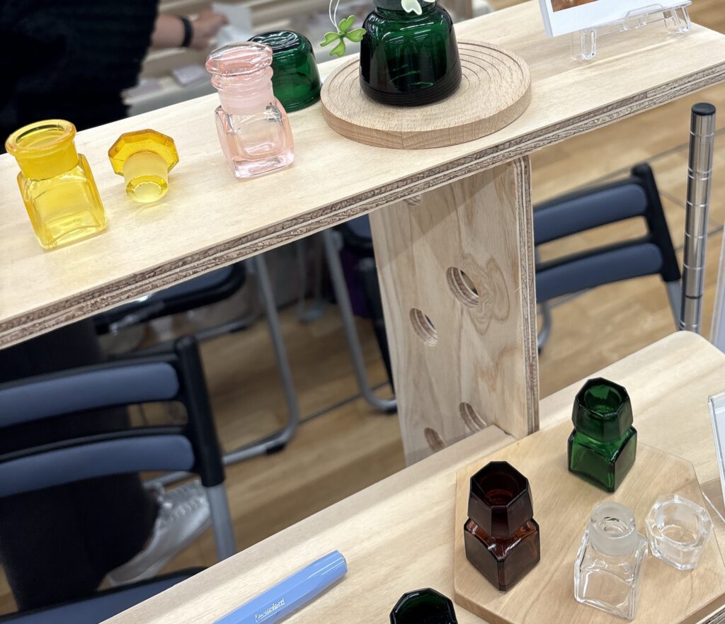 また、角フタ薬瓶(グリーン)は照明映えすることもあり人気で、ダッペングラス(透明)との組み合わせ購入もありました。