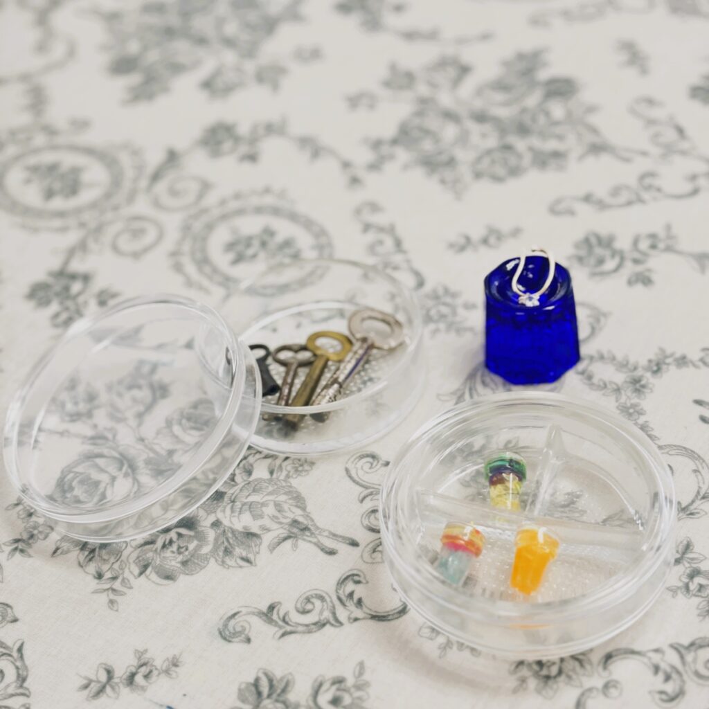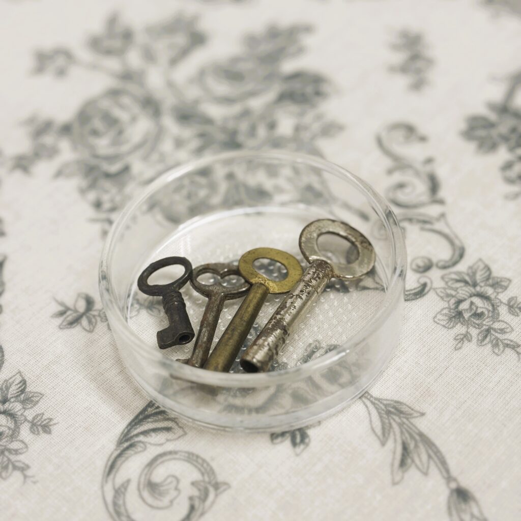 アンティークキーやミニチュアフードを入れると柔らかな表情になります。