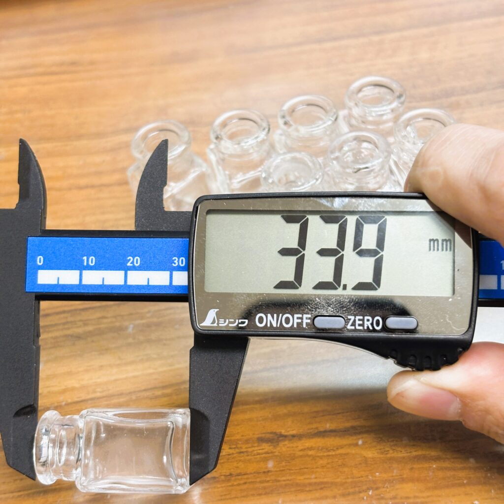 驚くべきはそのサイズです。 本体だけで33.9mm、ガラス栓を付けてもわずか40.3mm 。(若干の個体差があります)