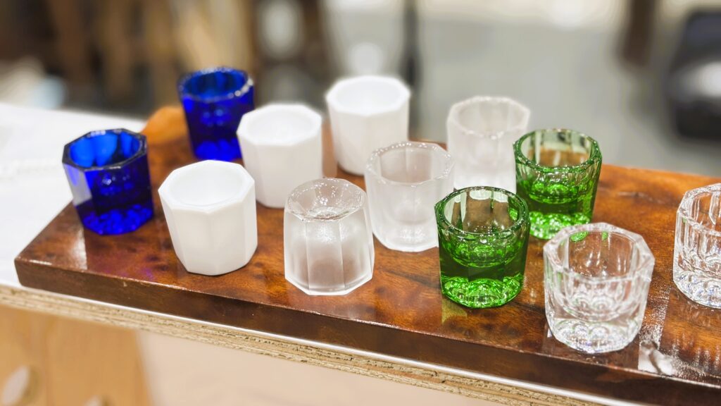 せっかくなのでガラスならではの「個体差」を伝え在庫も含めてお気に入りの1個を選んでもらう接客もしました。