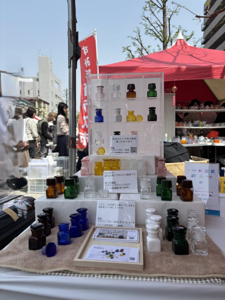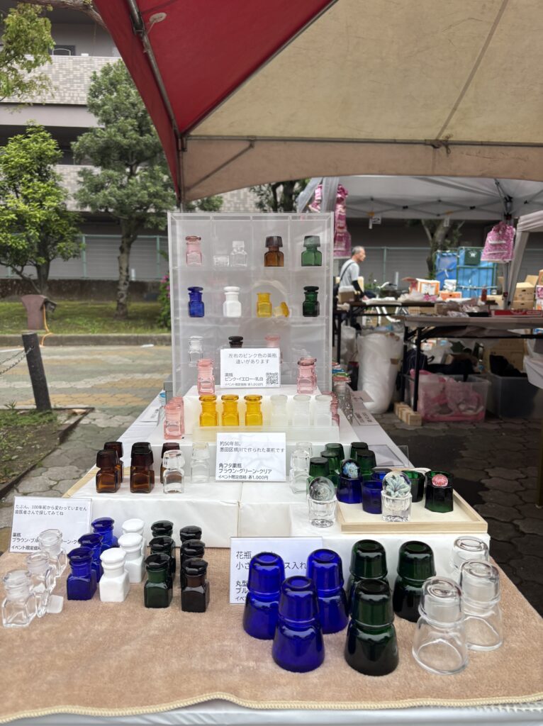 1日目は薬瓶がまさに飛ぶように売れたんです。なので欲をかいてダッペングラスと有帽瓶を追加したらごちゃごちゃになってPOPすらちゃんと読めない状況になったという・・・。