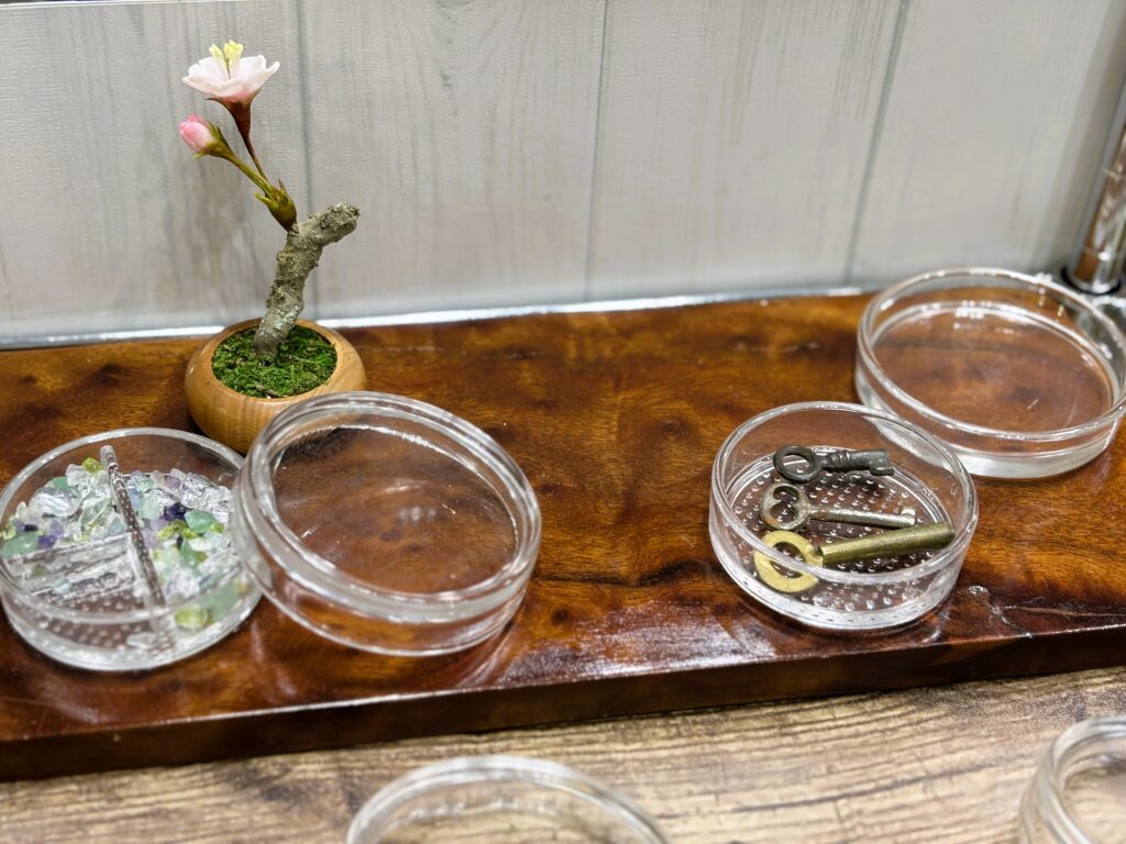 小さな鍵を飾る(ガラスシャーレ)